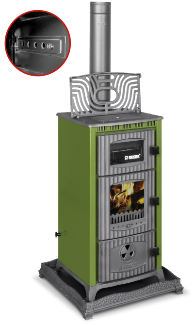 Lima ateş tuğlalı odun sobası konforlu kullanımı kuzine keyfiyle birleştirebilmek amacıyla dikey bir yapıda ve fırınlı olarak tasarlandı. Gövdesi 1 mm çelikten üretilip emaye ile kaplandı. Dökme demir olan üst plakası, plaka üstü ızgarası, cam çerçeveleri, cam kapakları ve ayakları Rekor’un modern teknoloji ile üretim yapan dökümhanesinde üretildi ve yanmaz boya ile boyandı. Yanma haznesinin kapak camında Almanya’da üretilen yüksek ısıya dayanıklı Schott Robax markalı seramik cam tercih edildi. Fırın çerçevesinde özel kesilip rodajlanmış temperli cam kullanıldı. Fırın ve yanma odasının camları sızdırmazlık özelliğine sahip özel fitil ile güçlendirildi. Kolay kullanışlı kül boşaltma sistemine ve yüksek kapasiteli yanma haznesine sahip olan Lima üstte ve önde yakıt yükleme kapağına sahiptir ve tüketicilere yüksek ısı verimliliği sunar.